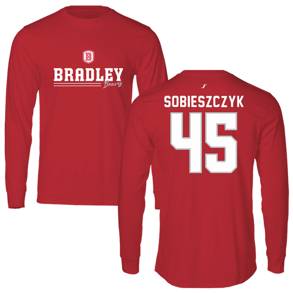 Bradley University Baseball Red Mascot Long Sleeve - #45 Isaac Sobieszczyk