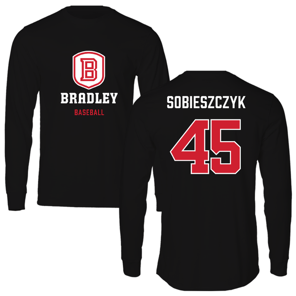 Bradley University Baseball Black Block Long Sleeve - #45 Isaac Sobieszczyk