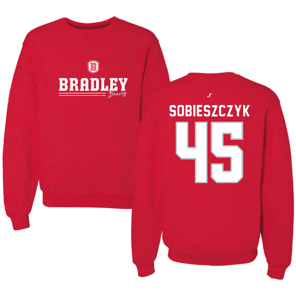 Bradley University Baseball Red General Crewneck - #45 Isaac Sobieszczyk