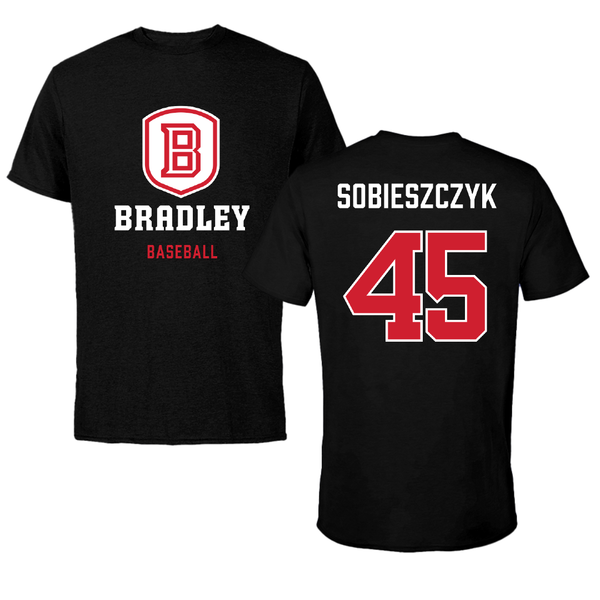 Bradley University Baseball Black Shield Tee - #45 Isaac Sobieszczyk