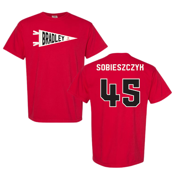 Bradley University Baseball Red Pennant Comfort Colors Tee - #45 Isaac Sobieszczyk