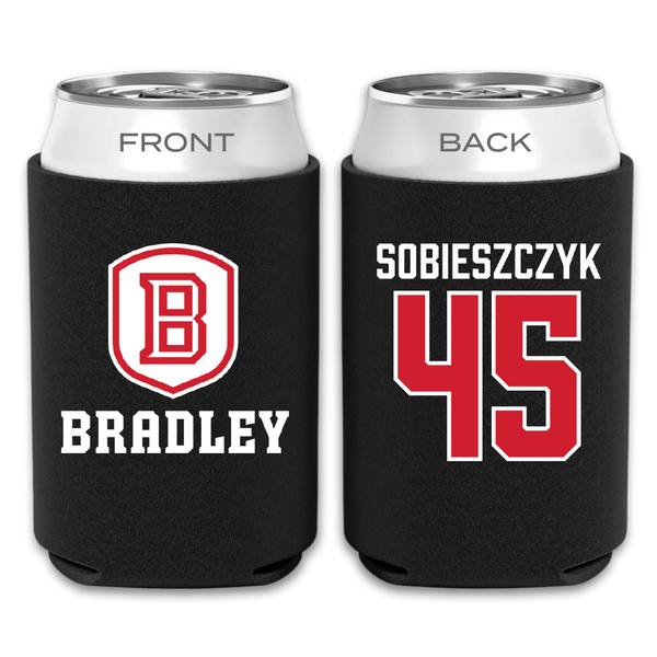 Bradley University Baseball Black Can Cooler - #45 Isaac Sobieszczyk