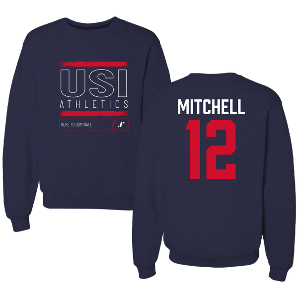 University of Southern Indiana Soccer Navy Dominate Crewneck - #12 Jackson Mitchell
