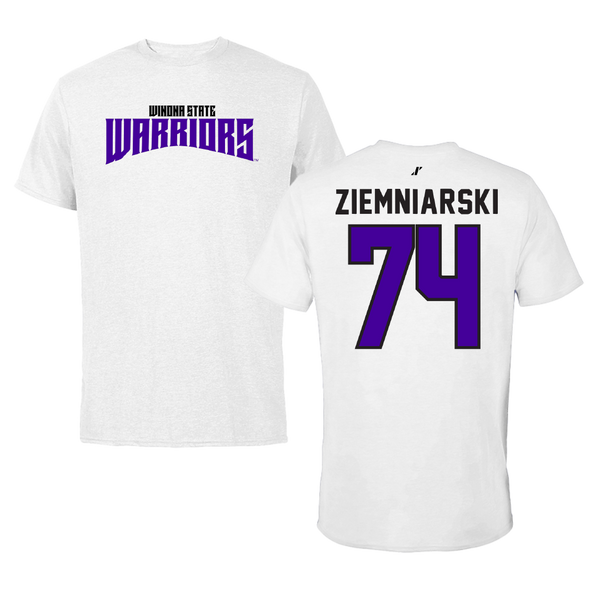 Winona State University Football White Classic Tee - #74 Jake Ziemniarski