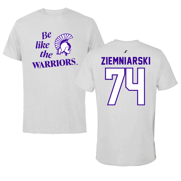 Winona State University Football Light Gray Be Like Us Tee - #74 Jake Ziemniarski