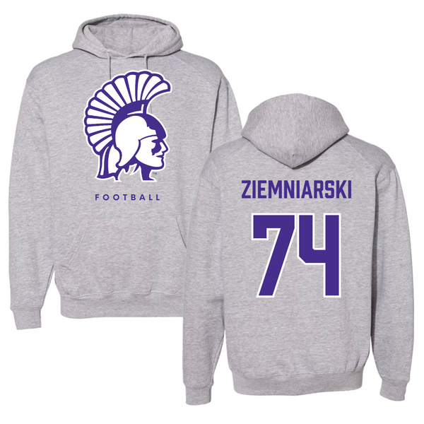 Winona State University Football Gray Hoodie - #74 Jake Ziemniarski