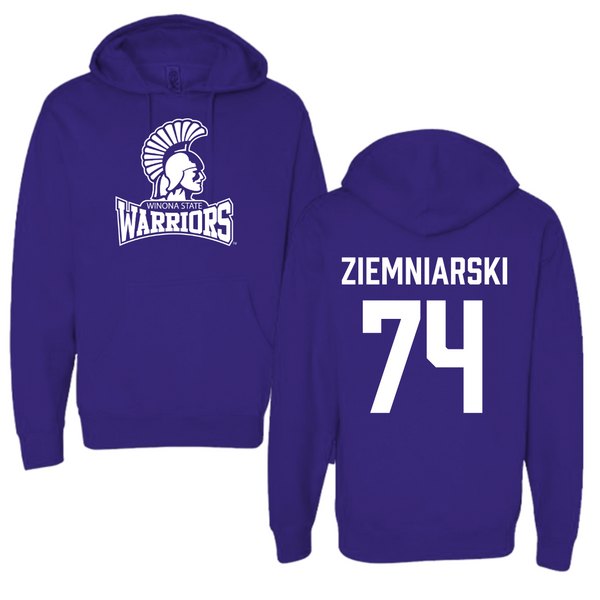 Winona State University Football Purple General Hoodie - #74 Jake Ziemniarski