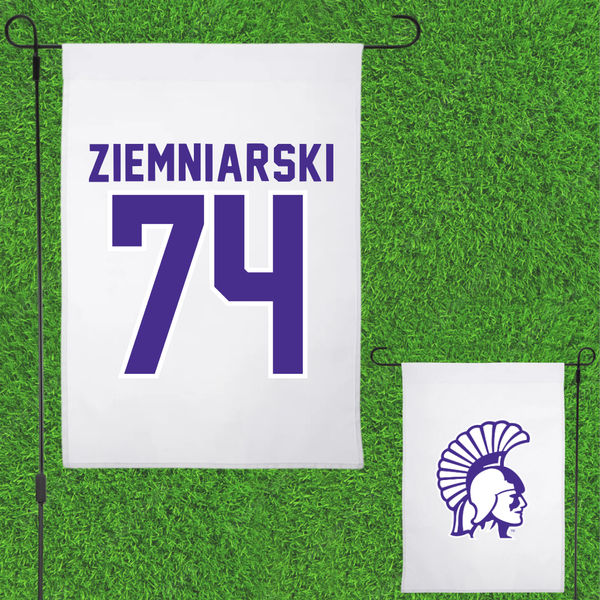 Winona State University Football White Garden Flag - #74 Jake Ziemniarski