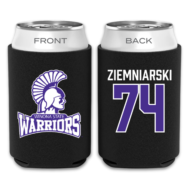 Winona State University Football Black Can Cooler - #74 Jake Ziemniarski