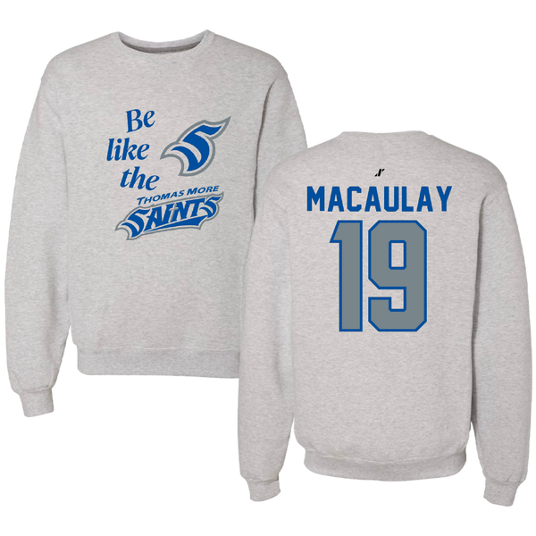 Thomas More University Lacrosse Light Gray Be Like Us Crewneck - #19 Jase Macaulay