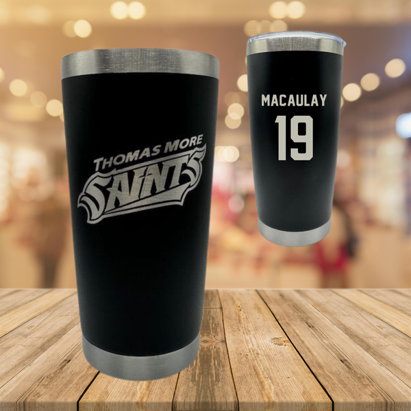 Thomas More University Lacrosse Black Stainless Steel Tumbler - #19 Jase Macaulay