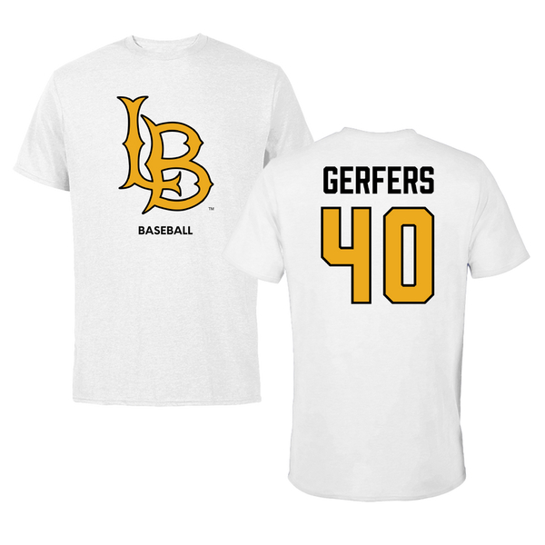 Long Beach State University Baseball White Performance Tee - #40 Jason Gerfers