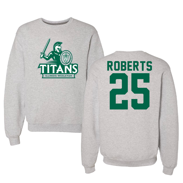 Illinois Wesleyan University Football Gray Titans Crewneck - #25 Jaxson Roberts