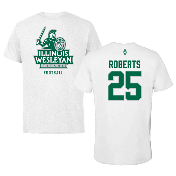 Illinois Wesleyan University Football White Tee - #25 Jaxson Roberts