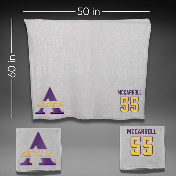 Alcorn State University Football Gray Blanket - #55 Jayden McCarroll