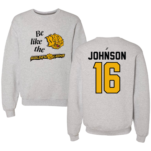 University of Arkansas-Pine Bluff Baseball Light Gray Be Like Us Crewneck - #16 Jaylon Johnson
