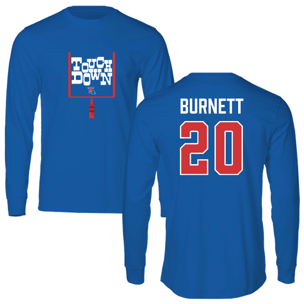 Louisiana Tech University Football Blue Touchdown Long Sleeve - #20 J'Dan Burnett