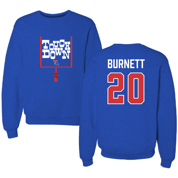Louisiana Tech University Football Blue Touchdown Crewneck - #20 J'Dan Burnett
