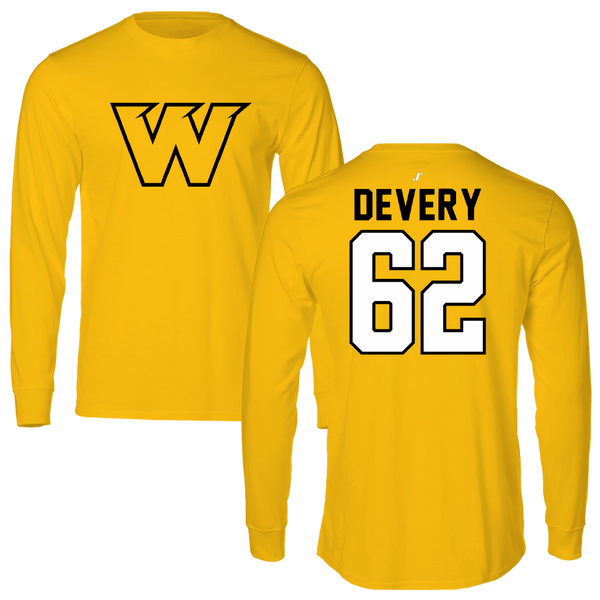 Wayne State College (Nebraska) Football Gold Long Sleeve - #62 John Devery