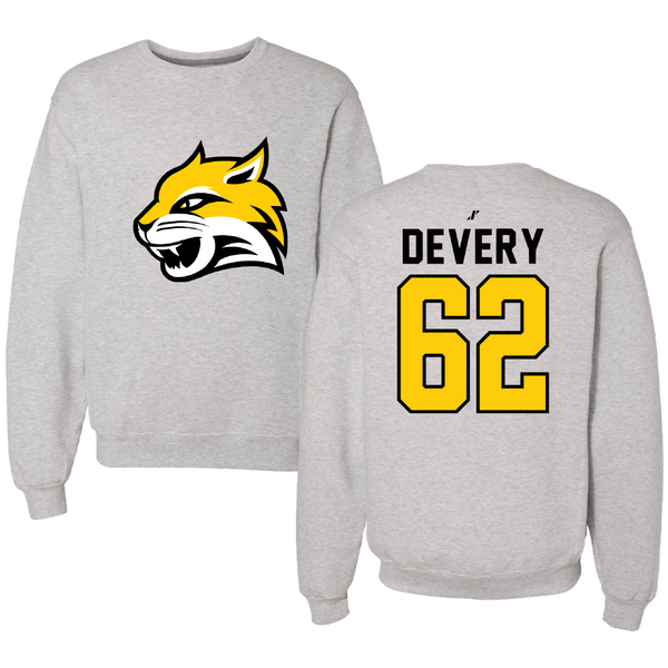Wayne State College (Nebraska) Football Light Gray Crewneck - #62 John Devery