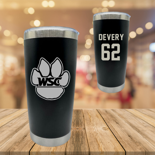 Wayne State College (Nebraska) Football Black Stainless Steel Tumbler - #62 John Devery