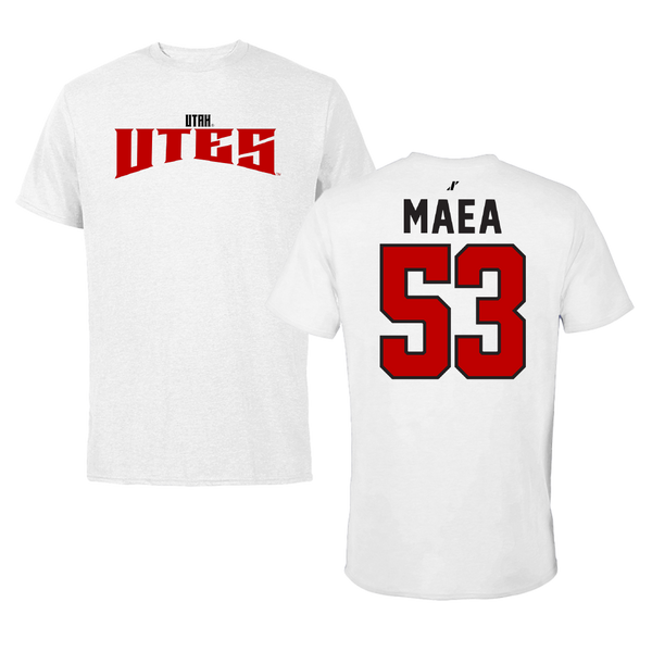 University of Utah Football White Tee - #53 Johnny Maea
