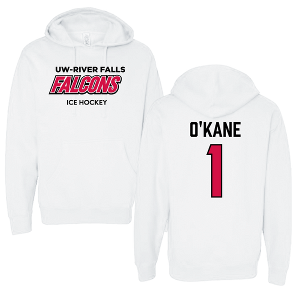 University of Wisconsin-River Falls Ice Hockey (W) White Falcons Hoodie - #1 Jordan O'Kane