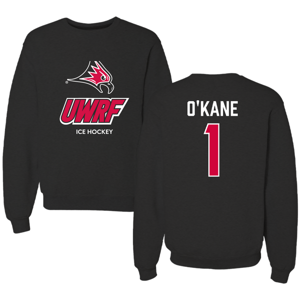 University of Wisconsin-River Falls Ice Hockey (W) Black Crewneck - #1 Jordan O'Kane