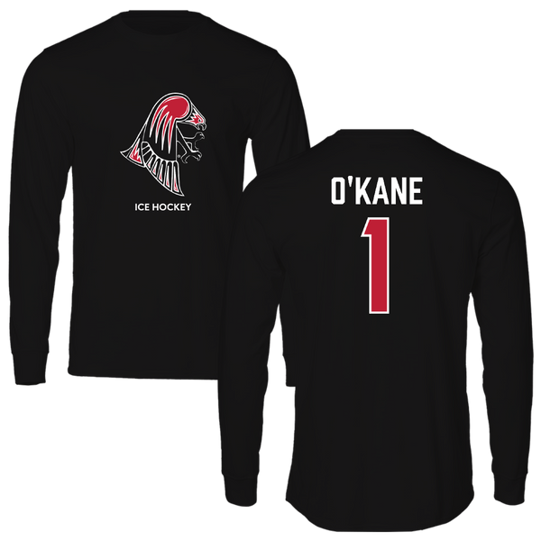 University of Wisconsin-River Falls Ice Hockey (W) Black Mascot Long Sleeve - #1 Jordan O'Kane