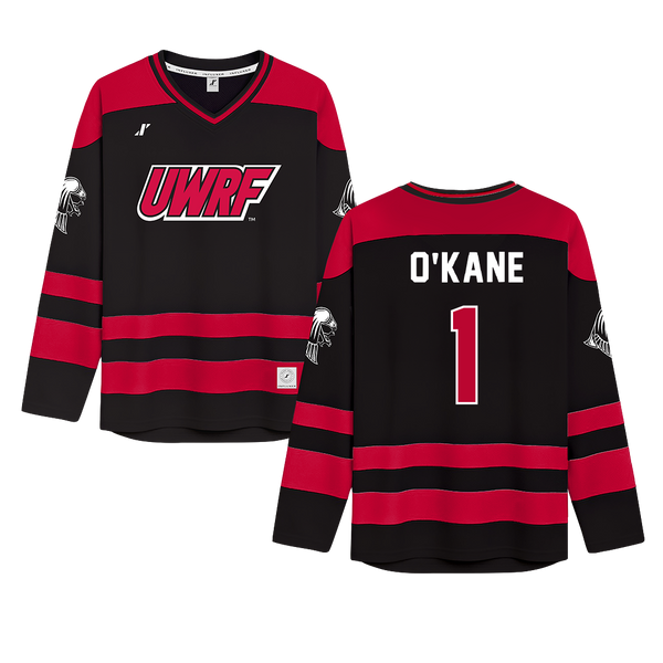 University of Wisconsin-River Falls Black Hockey Jersey - #1 Jordan O'Kane