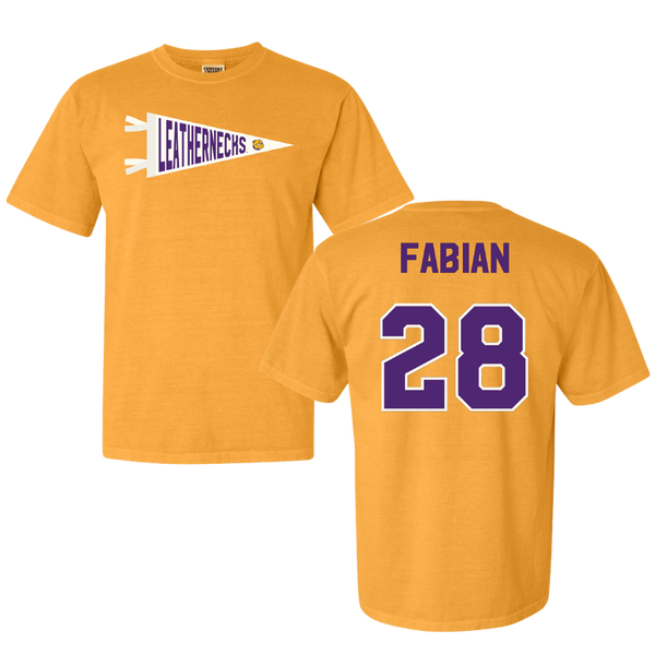 Western Illinois University Baseball Gold Pennant Comfort Colors Tee - #28 JT Fabian