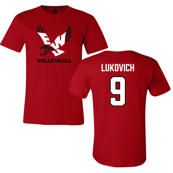 Eastern Washington University Volleyball Red Tee - #9 Kalista Lukovich