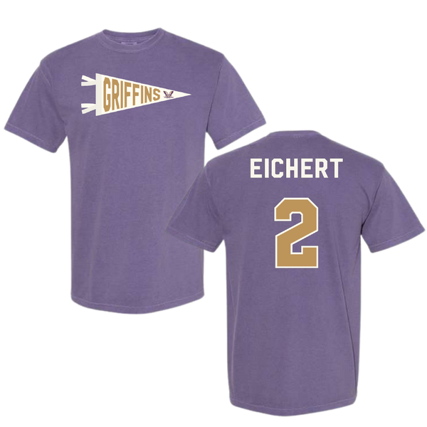 Westminster University (Utah) Volleyball Purple Pennant Comfort Colors Tee - #2 Katelyn Eichert