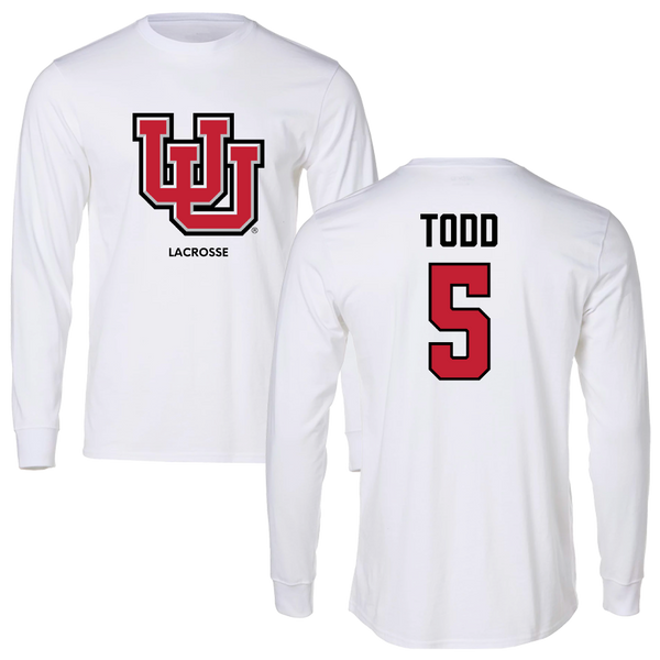 University of Utah Lacrosse (M) White Block Long Sleeve - #5 Koa Todd