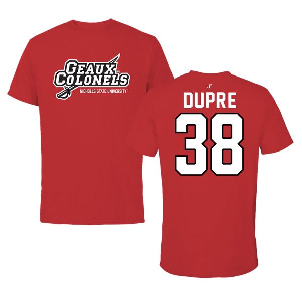 Nicholls State University Football Red General Tee - #38 Kylan Dupre