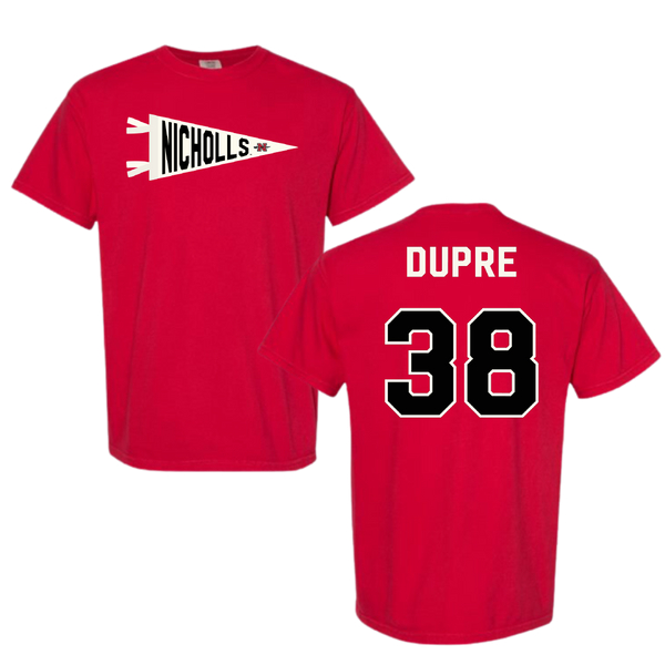 Nicholls State University Football Red Pennant Comfort Colors Tee - #38 Kylan Dupre