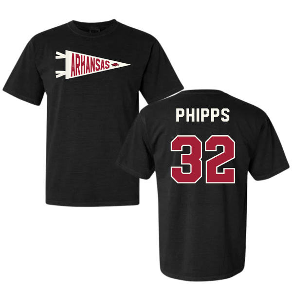 University of Arkansas Football Black Pennant Comfort Colors Tee - #32 Landon Phipps