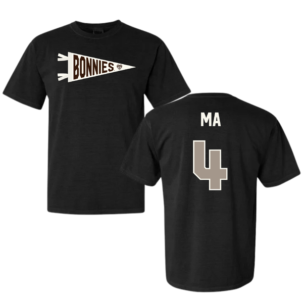 St. Bonaventure University Soccer Black Pennant Comfort Colors Tee - #4 Lilly Ma