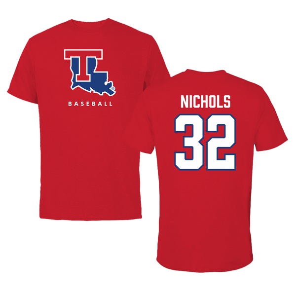 Louisiana Tech University Baseball Red Tee - #32 Luke Nichols