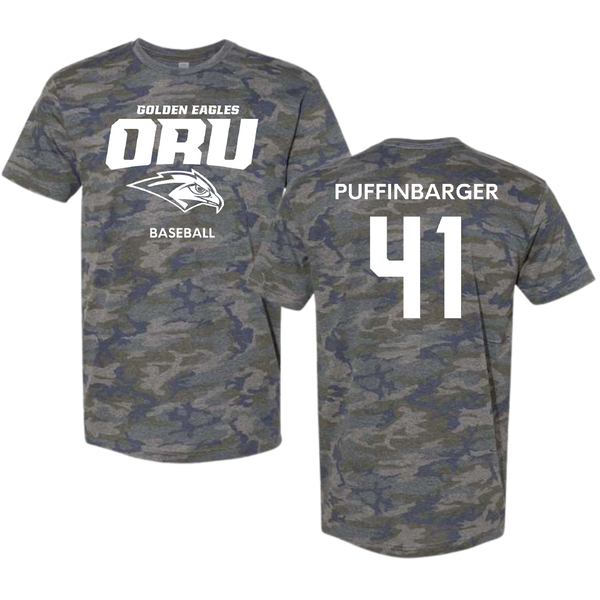 Oral Roberts University Baseball Vintage Camo Tee - #41 Luke Puffinbarger