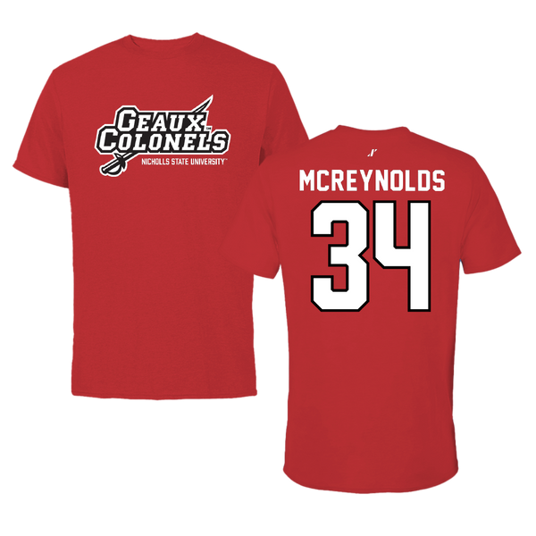 Nicholls State University Soccer Red General Tee - #34 Mallory McReynolds