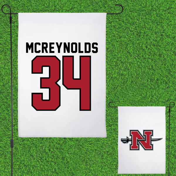 Nicholls State University Soccer White Garden Flag - #34 Mallory McReynolds
