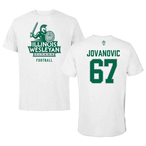 Illinois Wesleyan University Football White Tee - #67 Mihailo Jovanovic