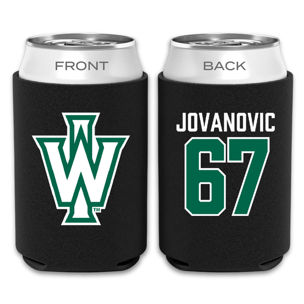 Illinois Wesleyan University Football Black Can Cooler - #67 Mihailo Jovanovic