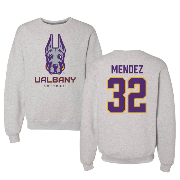 University at Albany Softball Gray Crewneck - #32 Natasha Mendez