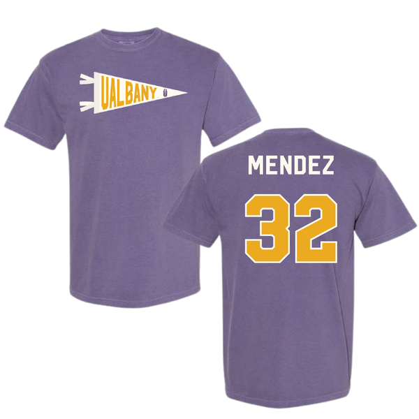 University at Albany Softball Purple Pennant Comfort Colors Tee - #32 Natasha Mendez