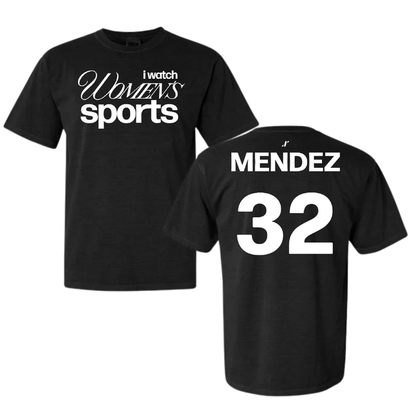University at Albany Softball Black WHM Comfort Colors Tee - #32 Natasha Mendez