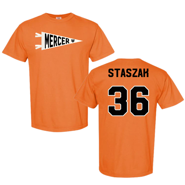 Mercer University Baseball Orange Pennant Comfort Colors Tee - #36 Nick Staszak