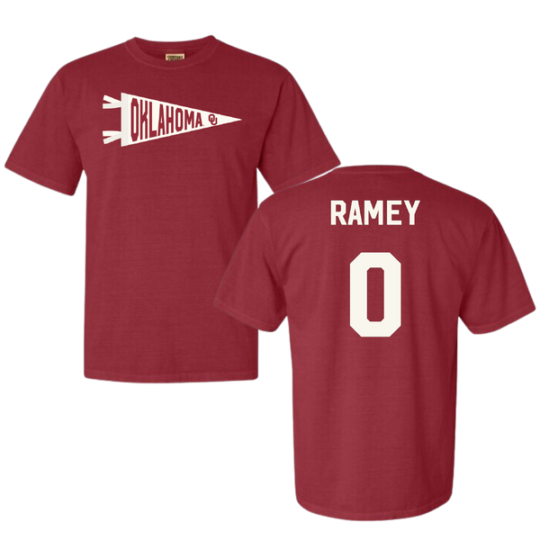University of Oklahoma Soccer Crimson Pennant Comfort Colors Tee - #0 Olivia Ramey