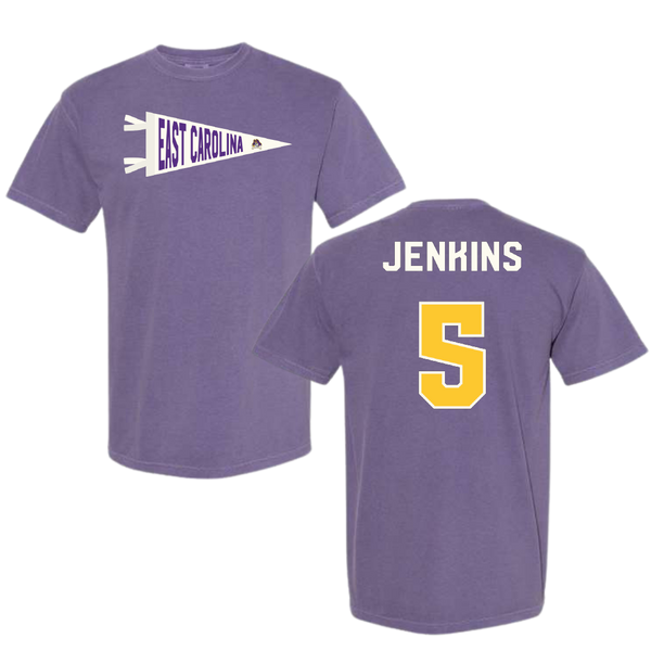 East Carolina University Football Purple Pennant Comfort Colors Tee - #5 Parker Jenkins